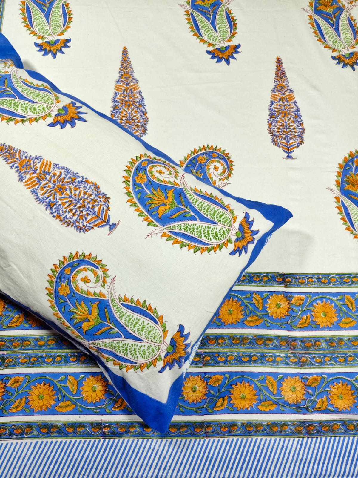 ♻️Pure Hand Block King Size Cotton Badsheet With 2 Zipped Reversable Pillow Covers