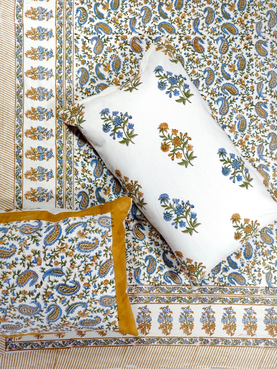 ♻️Pure Hand Block King Size Cotton Badsheet With 2 Zipped Reversable Pillow Covers