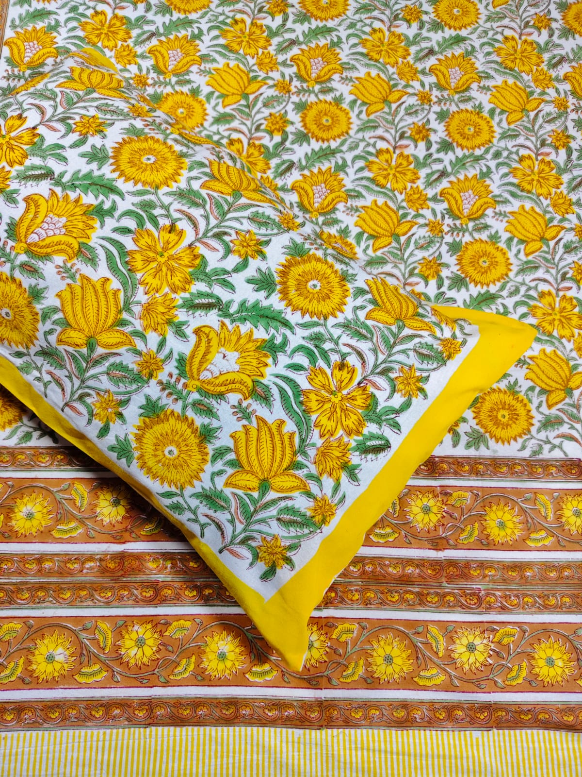 ♻️Pure Hand Block King Size Cotton Badsheet With 2 Zipped Reversable Pillow Covers