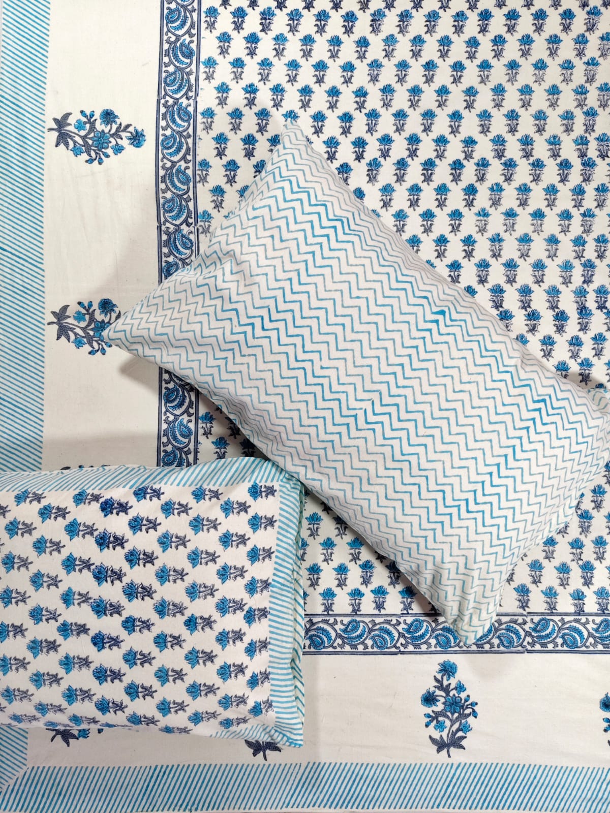 ♻️Pure Hand Block King Size Cotton Badsheet With 2 Zipped Reversable Pillow Covers