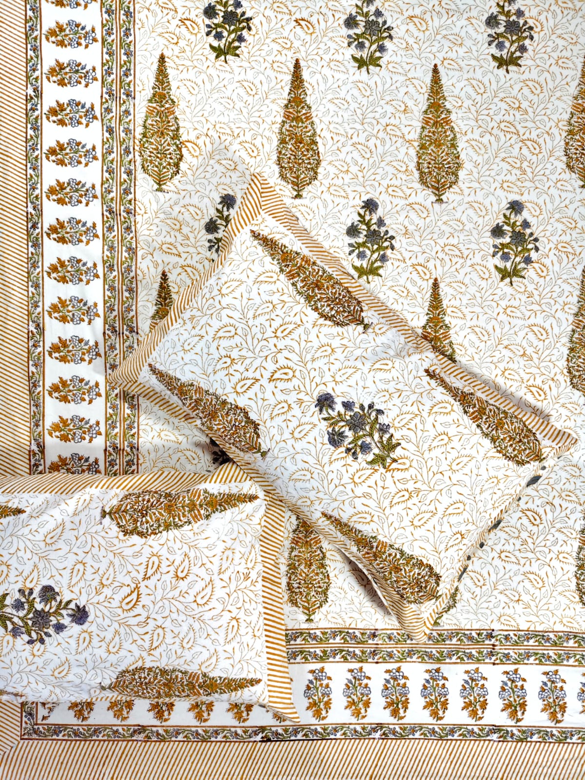 ♻️Pure Hand Block King Size Cotton Badsheet With 2 Zipped Reversable Pillow Covers