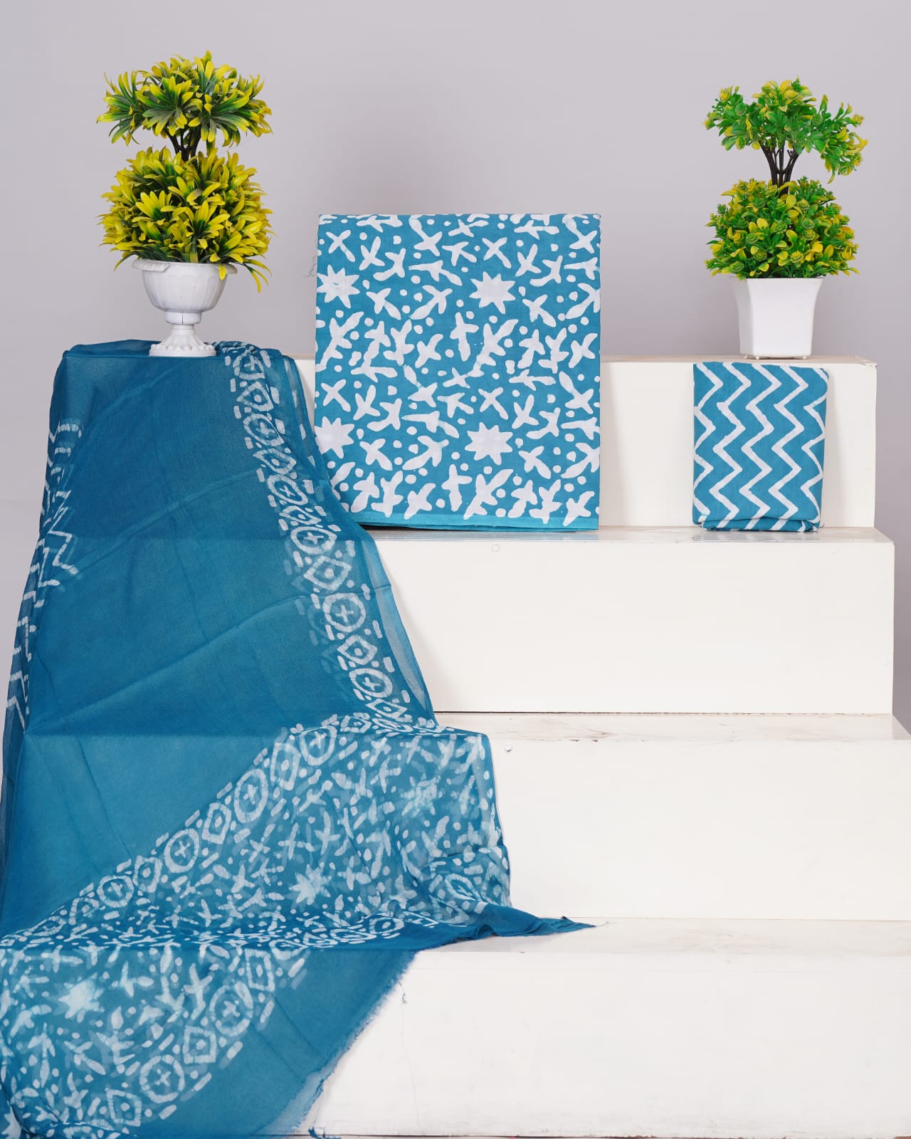 (BATIK) Hand Block Printed Pure Cotton Unstitched Suit With Chiffon Dupatta