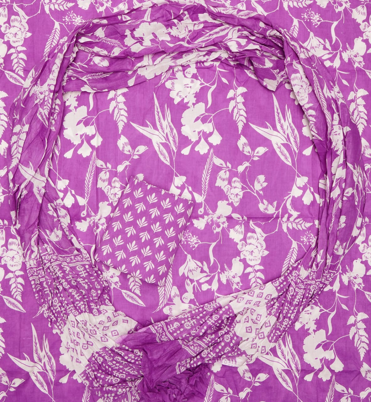 Hand Printed Unstiched Cotton Suit With Mulmul Dupatta