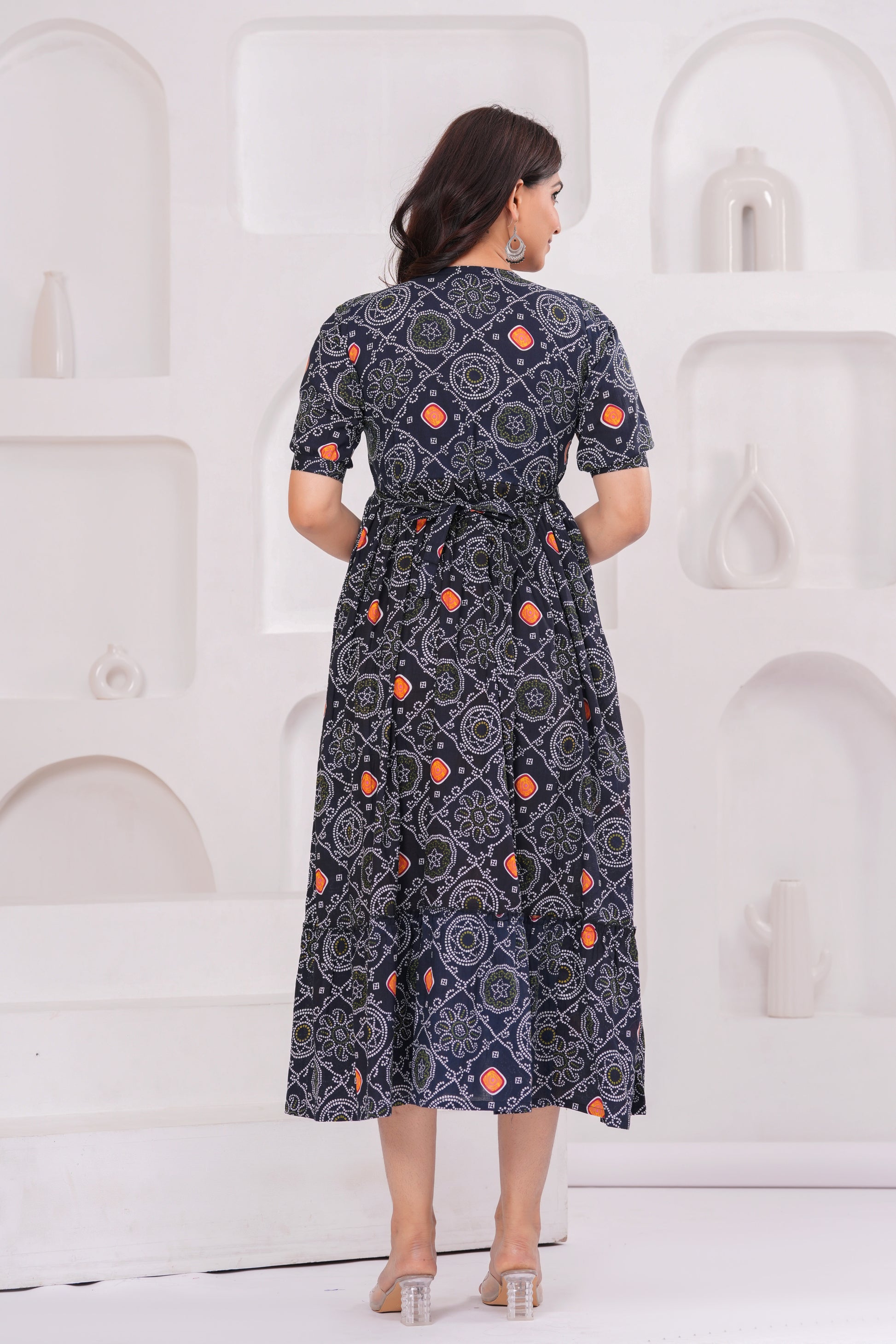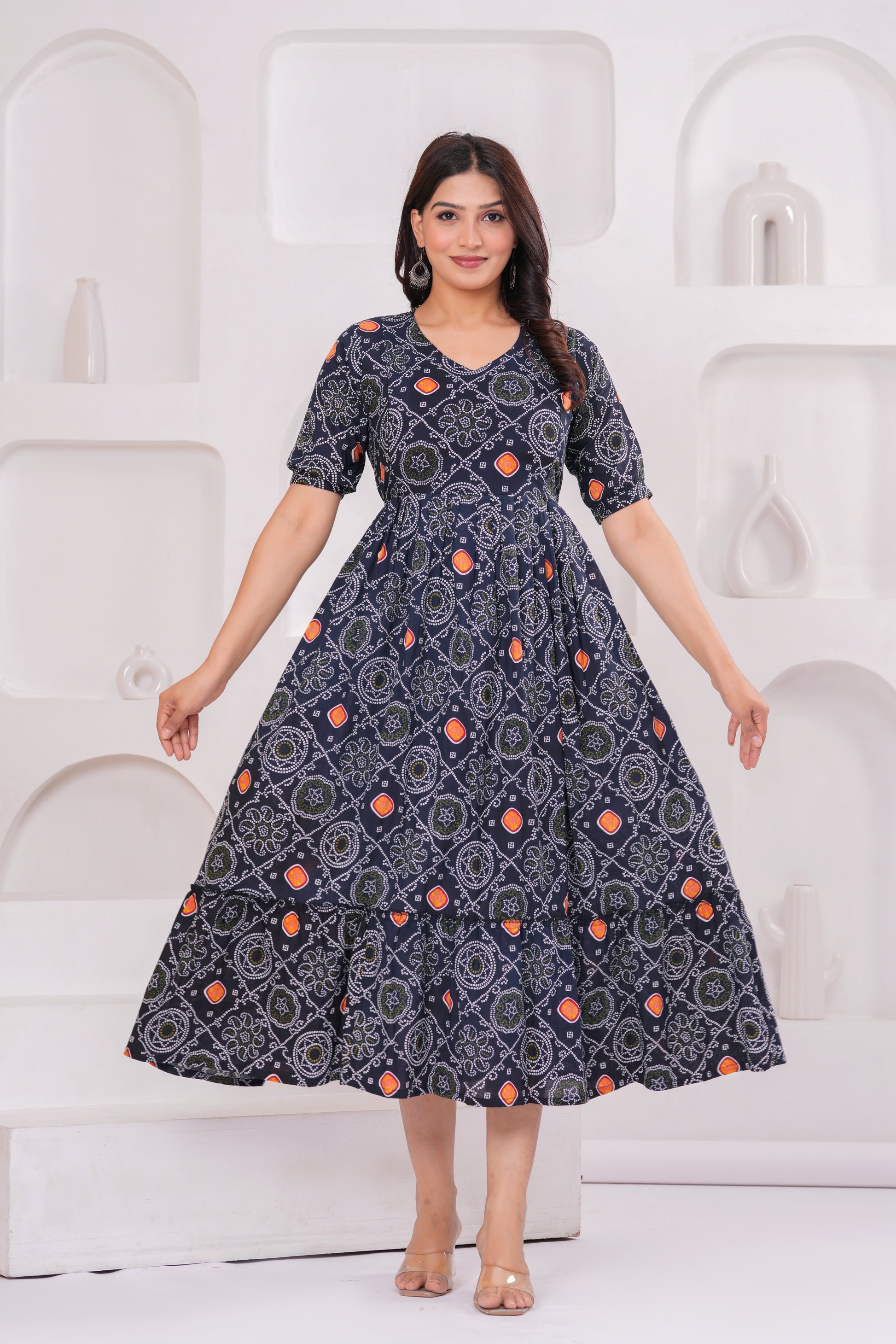 - Pattern: Printed, Gawn Length: 50Inch, Sleeve & Neckline:- 3/4 Sleeves
