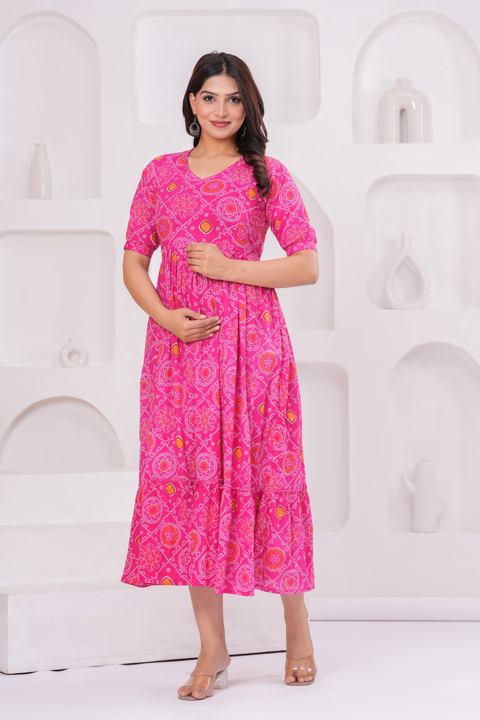 New Exclusive Cotton Cambric Floral Printed With Zip Design Maternity Gawn