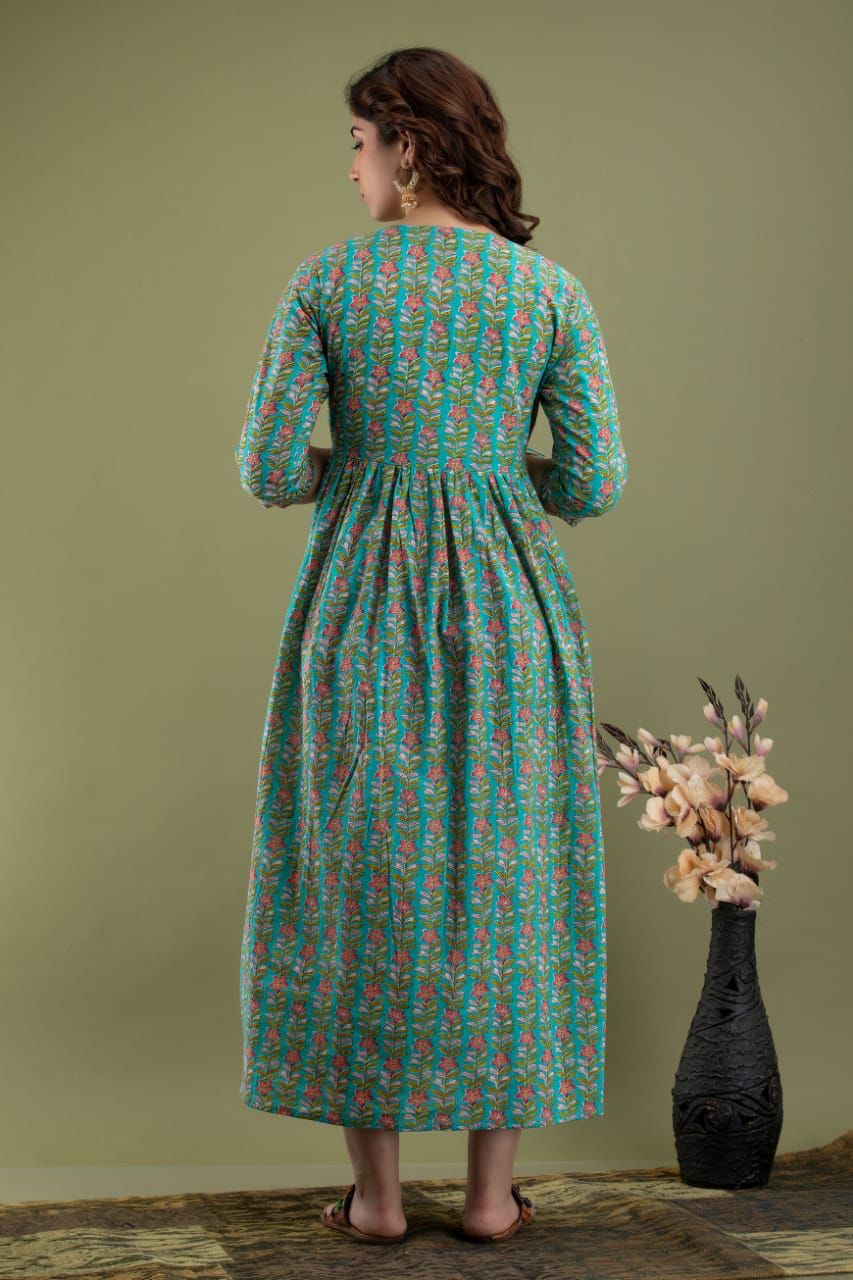 - Pattern: Printed, Gawn Length: 50Inch, Sleeve & Neckline:- 3/4 Sleeves