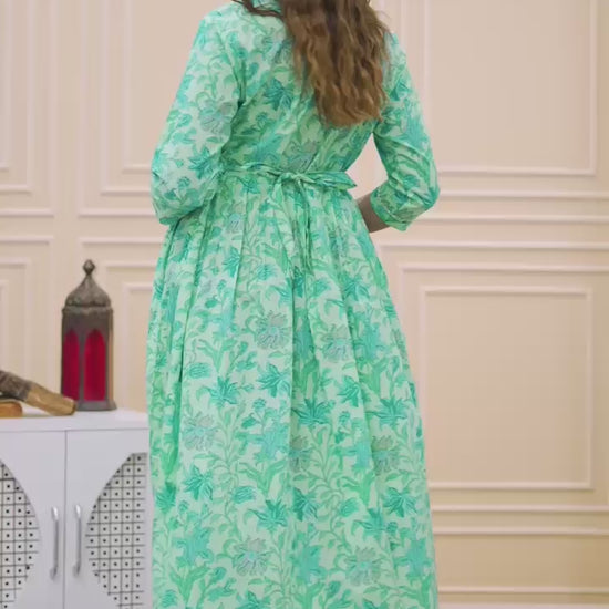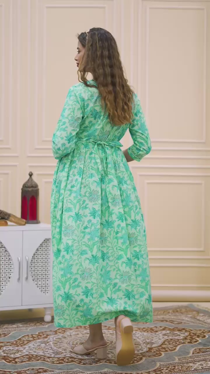 - Pattern: Printed, Gawn Length: 50Inch, Sleeve & Neckline:- 3/4 Sleeves