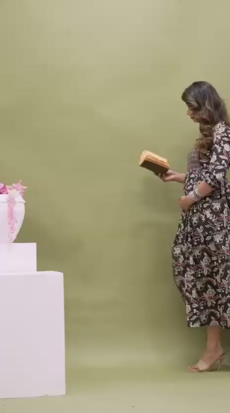 - Pattern: Printed, Gawn Length: 50Inch, Sleeve & Neckline:- 3/4 Sleeves