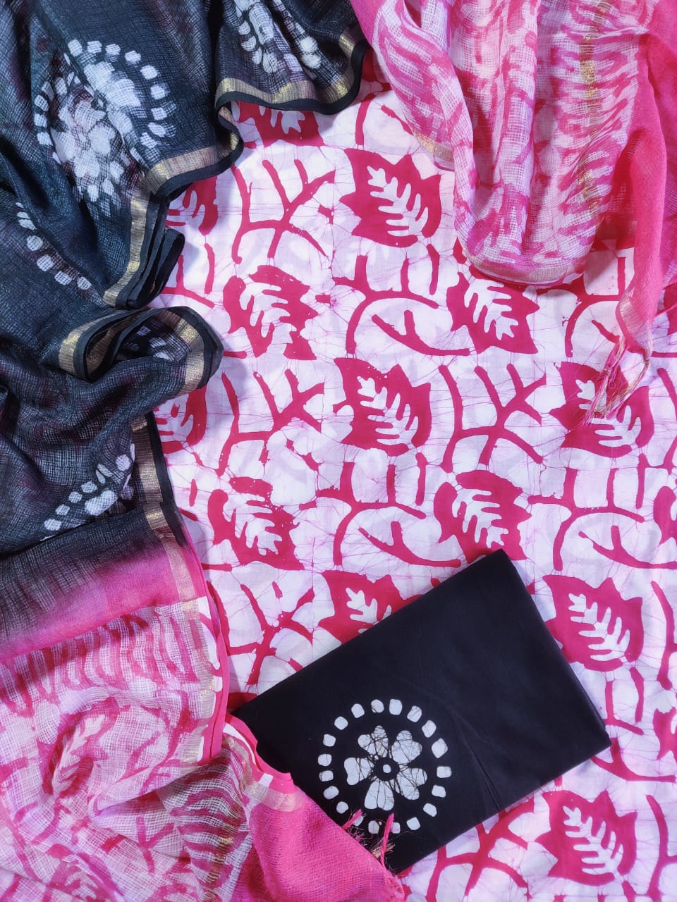 Pure Cotton Unstitched Suit With Pure Kota Doria Dupatta