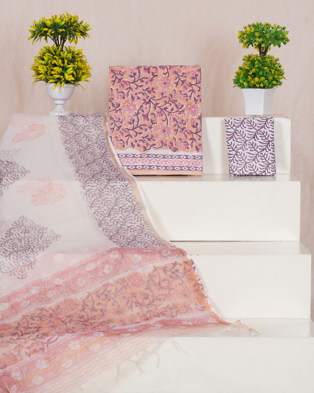 Pure Cotton Unstitched Suit With Pure Kota Doria Dupatta With Jari Border